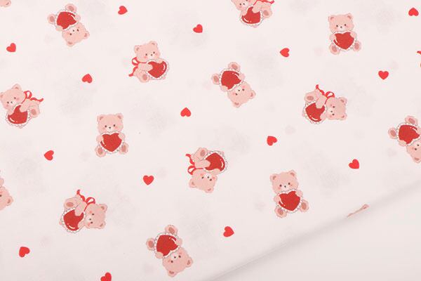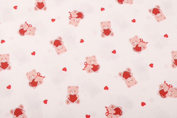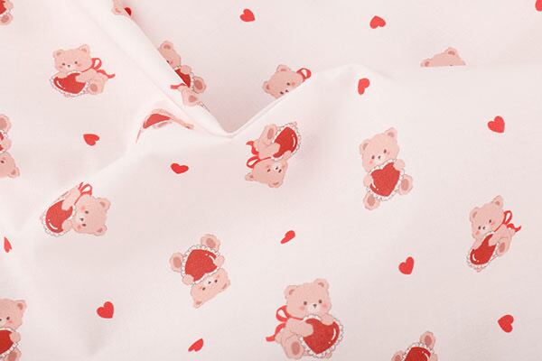 ふんわり優しいベージュトーンのベースに、赤いハートがアクセントになった韓国製コットン。